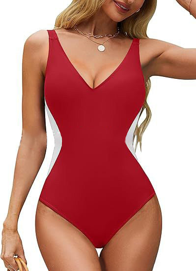 🏖️2025 Summer Hot Sale 50% OFF🏝️Illusion Waist-Cinching Deep V Color Block Swimsuit
