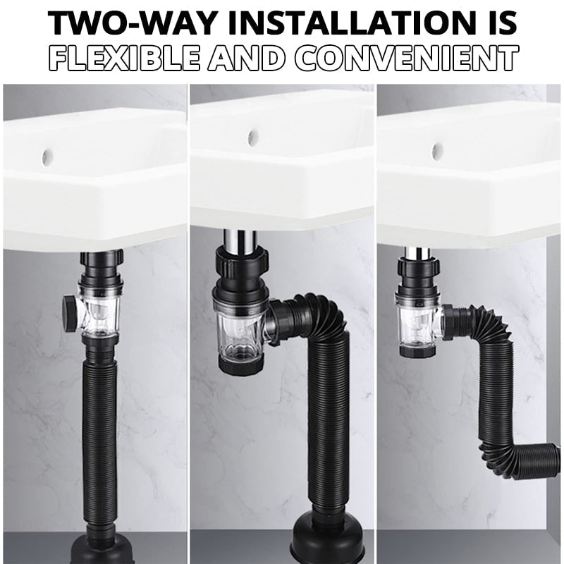 The drain pipe kit is designed with an anti-clogging sink plug, which can collect hair and fines and prevent the drain from clogging.