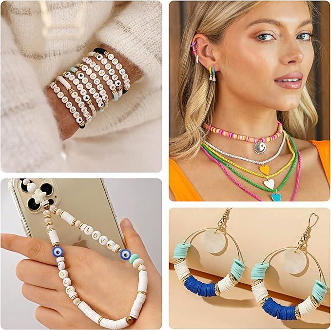 VARIETY OF ACCESSORIES: Almost all regular accessories are included in this kit. There are letter beads, number beads, peace beads, shells, gold and silver pendants, and golden beads in various styles. The basic tools needed to make jewelry are all ready, such as lobster clasps, buckles, jump rings, head pins, eye pins, long gold chains, etc.