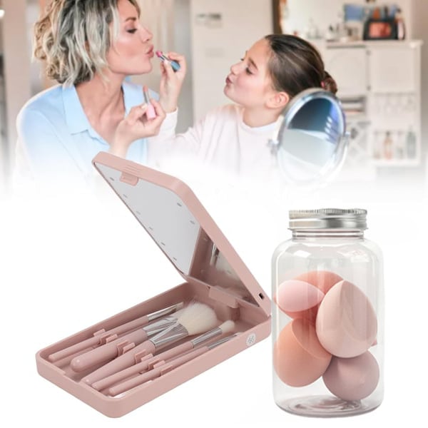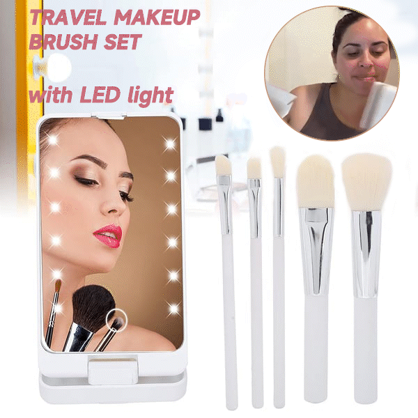 🌟Elevate your makeup application process with Travel Makeup Brush Set with LED Mirror - your ideal travel companion. Experience convenience and style like never before!