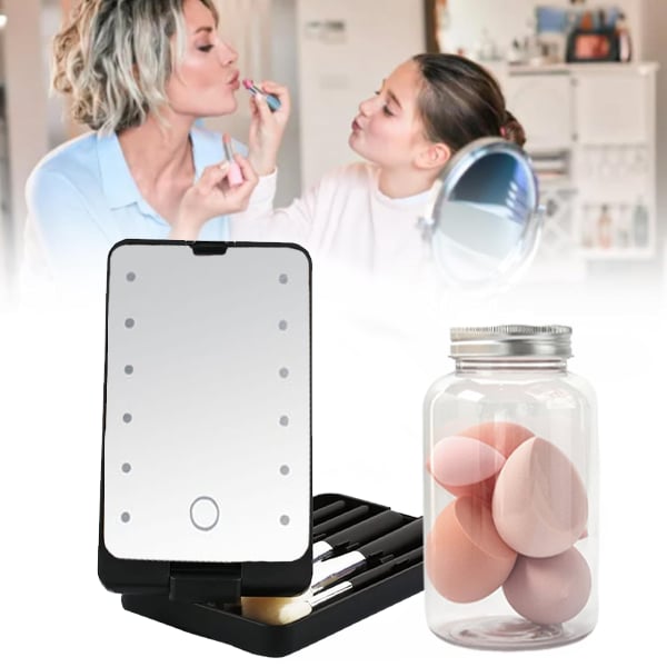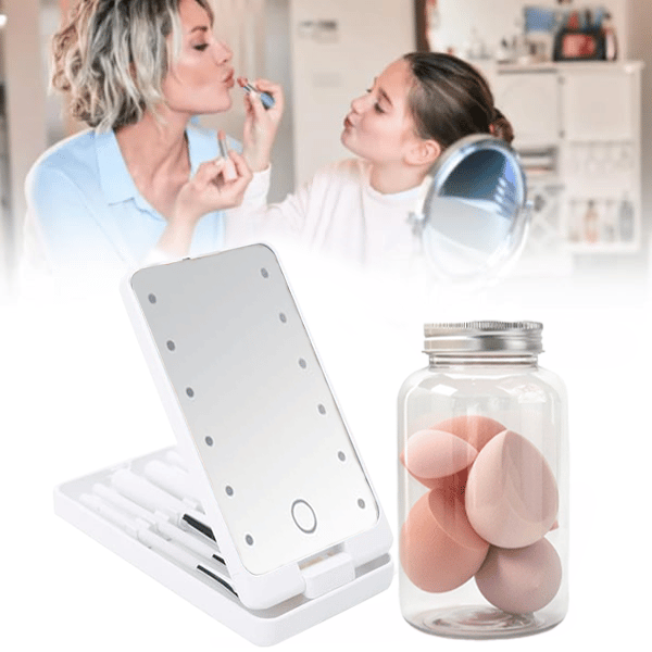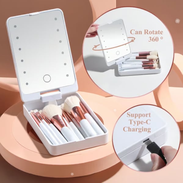 🌟Convenient LED Travel Case: Each set comes with a compact travel case featuring an integrated LED mirror. This makes it convenient for storage, traveling, and on-the-go touch-ups.