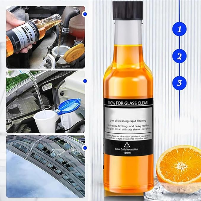 Clear Visibility: Our Car Glass Oil Film Cleaner is designed to remove stubborn oil films, ensuring unparalleled clarity and transparency without water droplets. Experience perfect transparency without the need for additional polishing.