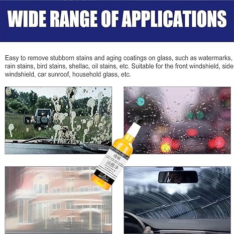 Mild and Safe Formula: The mild and non damaging formula of our Car Window Oil Film Cleaner and Glass Polisher makes it easy to wipe away impurities. Say goodbye to wiper induced abnormal sounds, ensuring a comfortable, clear, and safe travel experience.