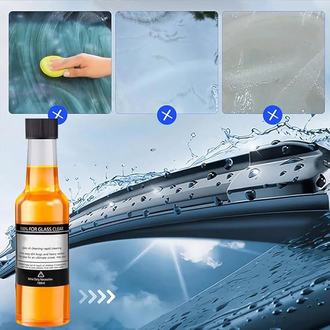 Effortless Application: Transform your Car Windshield with ease. Simply wash away debris, apply the oil film cleaner on a wet sponge, wipe it evenly, and rinse. This user friendly process quickly eliminates glass surface impurities, rain stains, and various residues, leaving your windshield spotless and clear.