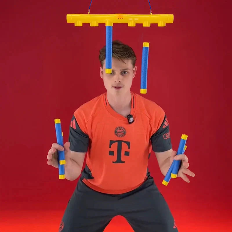 This reaction training toy is made of high-quality material, it is durable, and not easy to break. The sticks are made of environmentally friendly EVA, and rounded edges, are comfortable to touch, and will not cause injury. The baton game is easy to install, no tools are needed to complete the installation.