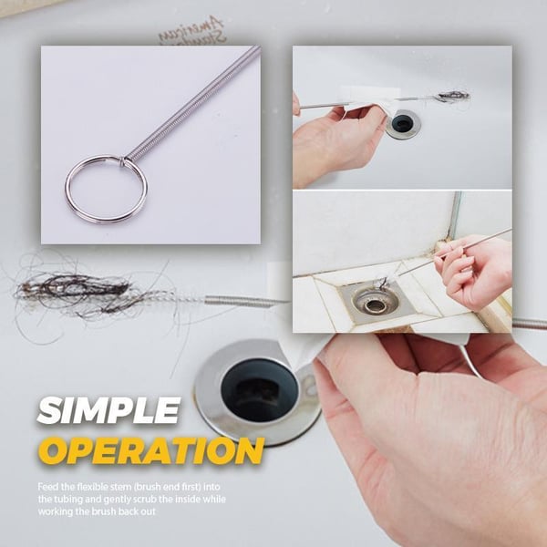 Simple operation: you can put the flexible rod (brush head first) into the pipe, and gently brush the inside, while pushing the brush outward, because its flexible and strong line body is easy to bend, so you can more Go deep into any drain to remove dirt.