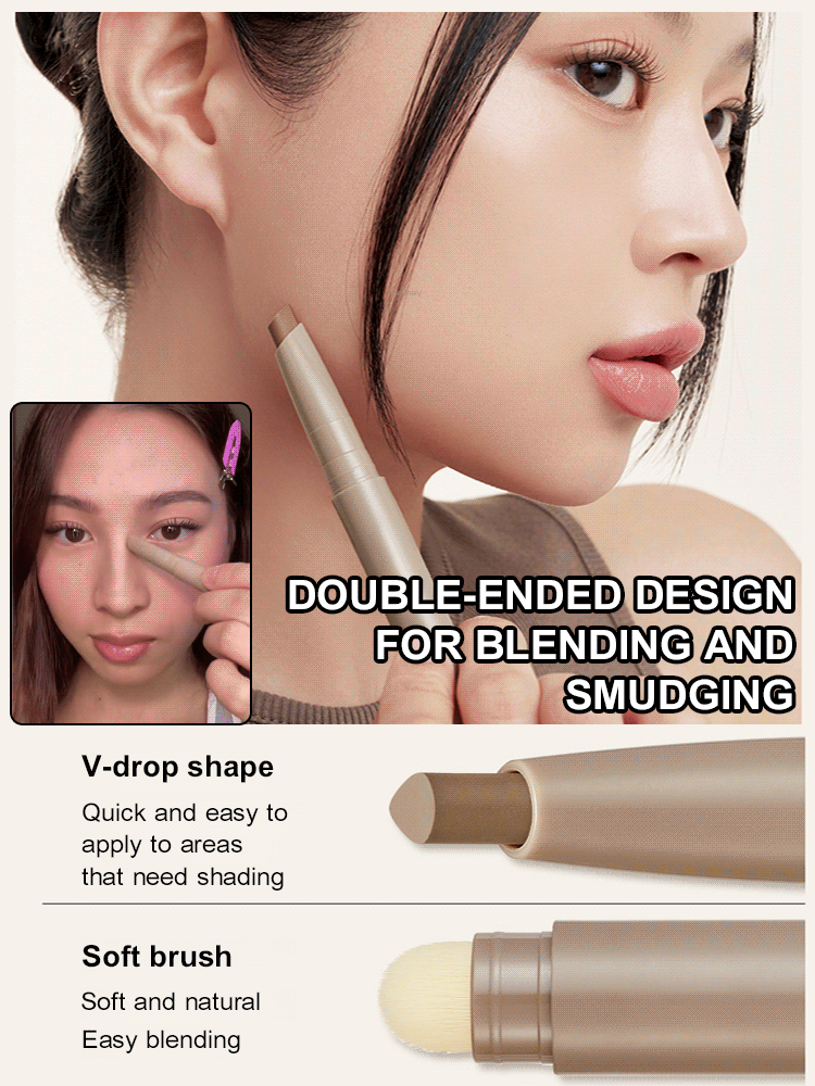 DUAL-HEAD DESIGN - TWO-IN-ONE VERSATILITY:This contour pencil features a unique dual-head design, allowing you to create beautiful shadows on one end and seamlessly blend and smudge with the natural brush on the other. It’s the perfect tool for a sculpted, natural look.