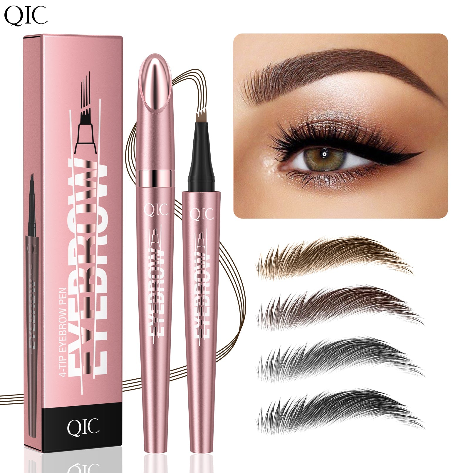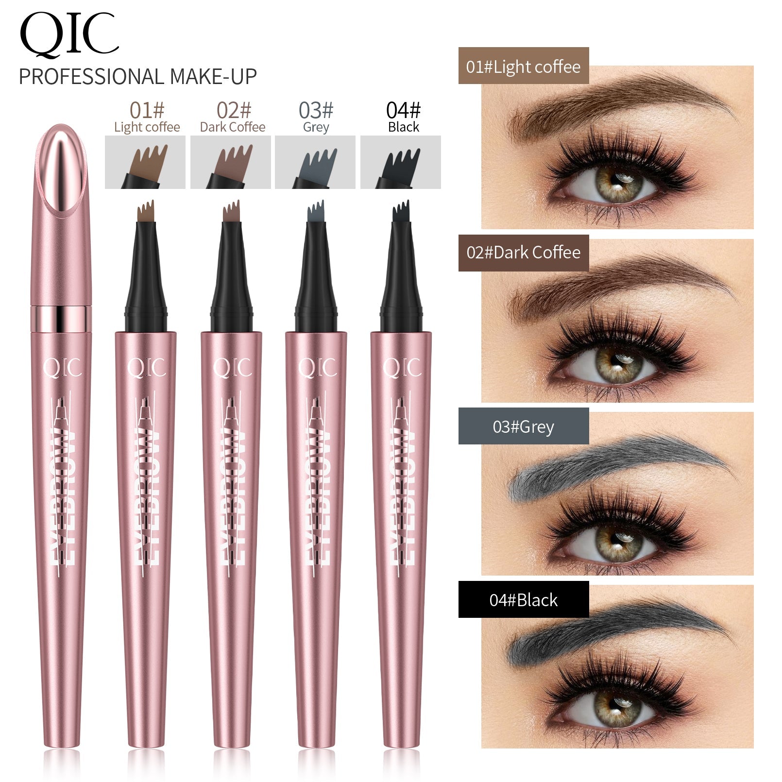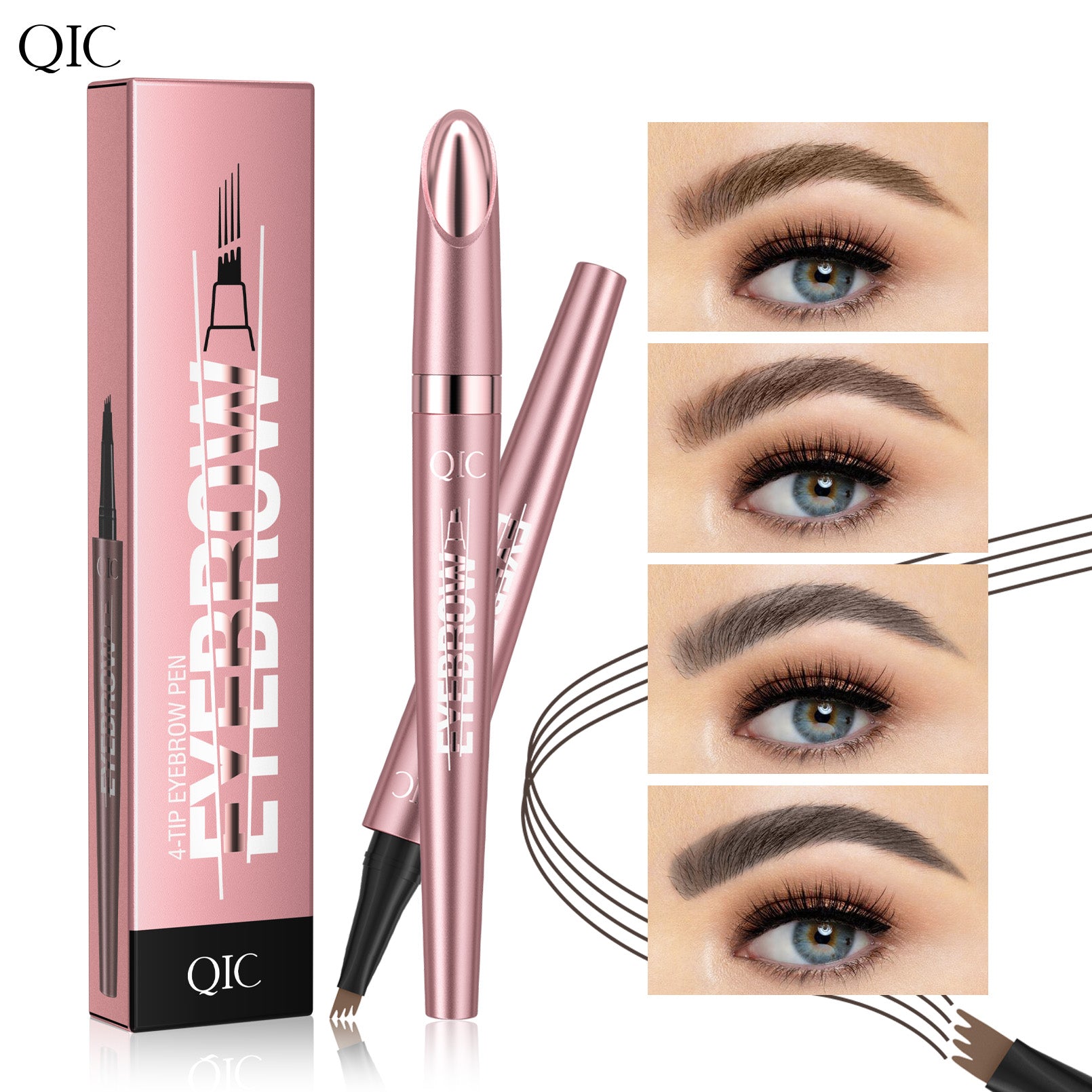 Multi-tipped end creates 4 micro-fine, hair-like lines in a single stroke, filling your hairless spots in a few flicks. This tip applicator creates the illusion of real, naturally grown eyebrow hairs. The soft-flexible tip mimics feathery brow texture to avoid brows looking too solid. No more old-fashioned brow filling!