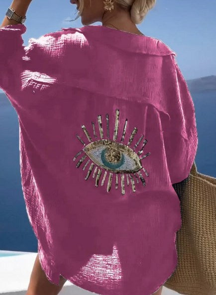 1 * Evil Eye Casual Sequin Beaded Shirt