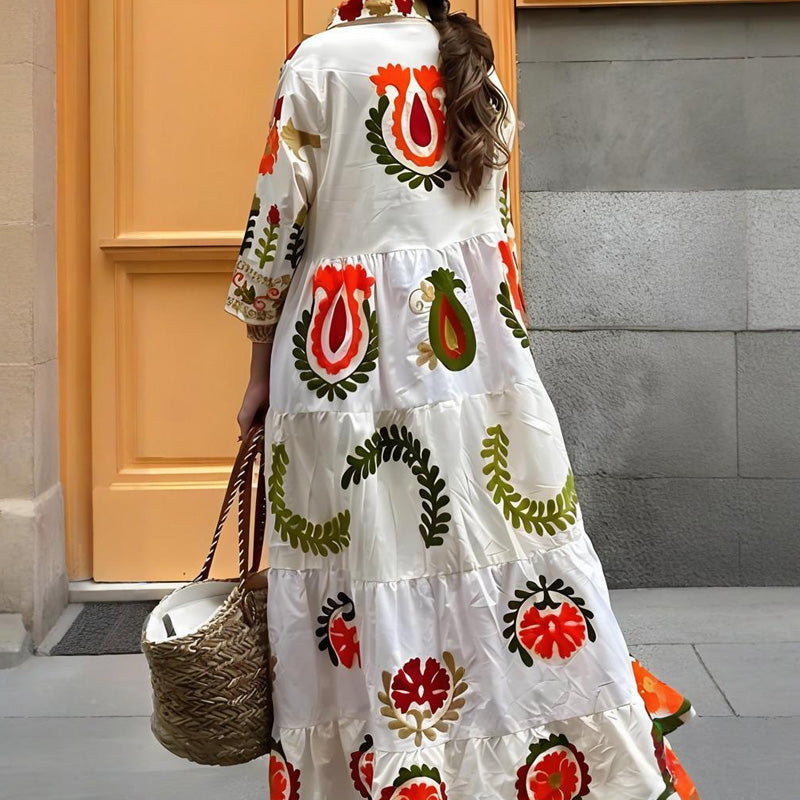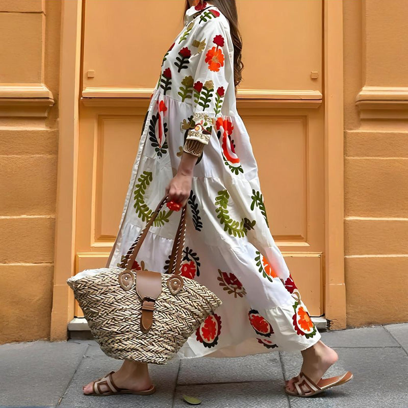 Flap Collar Printed Button-Down Maxi Dress
