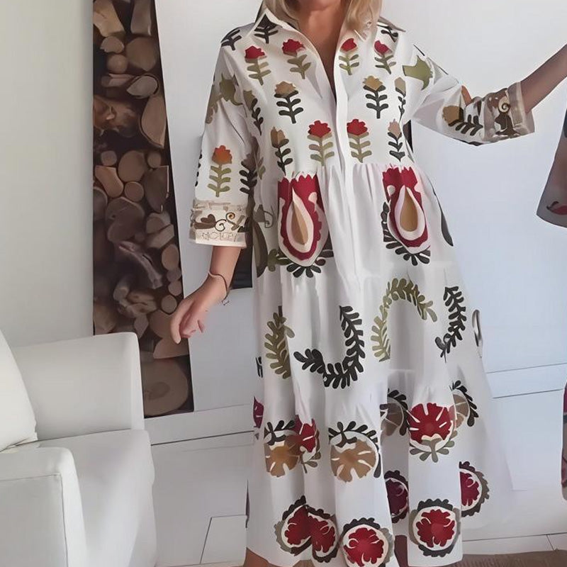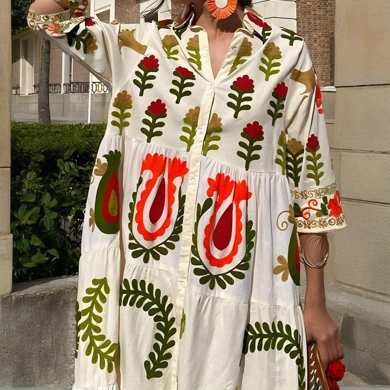 Package Includes: 1×Flap Collar Printed Button-Down Maxi Dress
