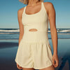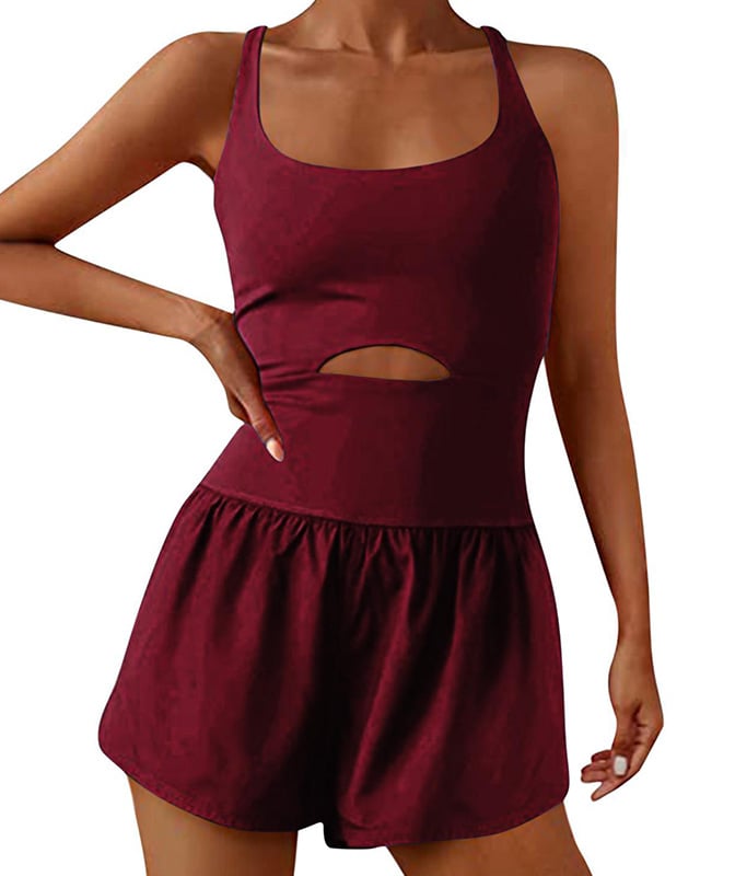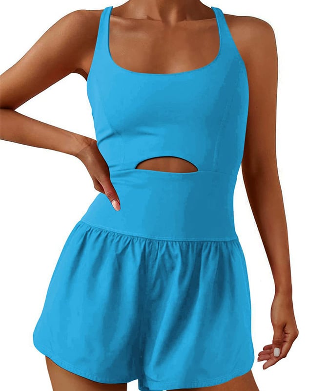 - Features: Sleeveless tank top, onesie, cross back design, running outfit, built in shorts, with inner liner, athletic one piece shorts, workout romper, running romper for women, one piece jumpsuits for women, womens workout shorts romper