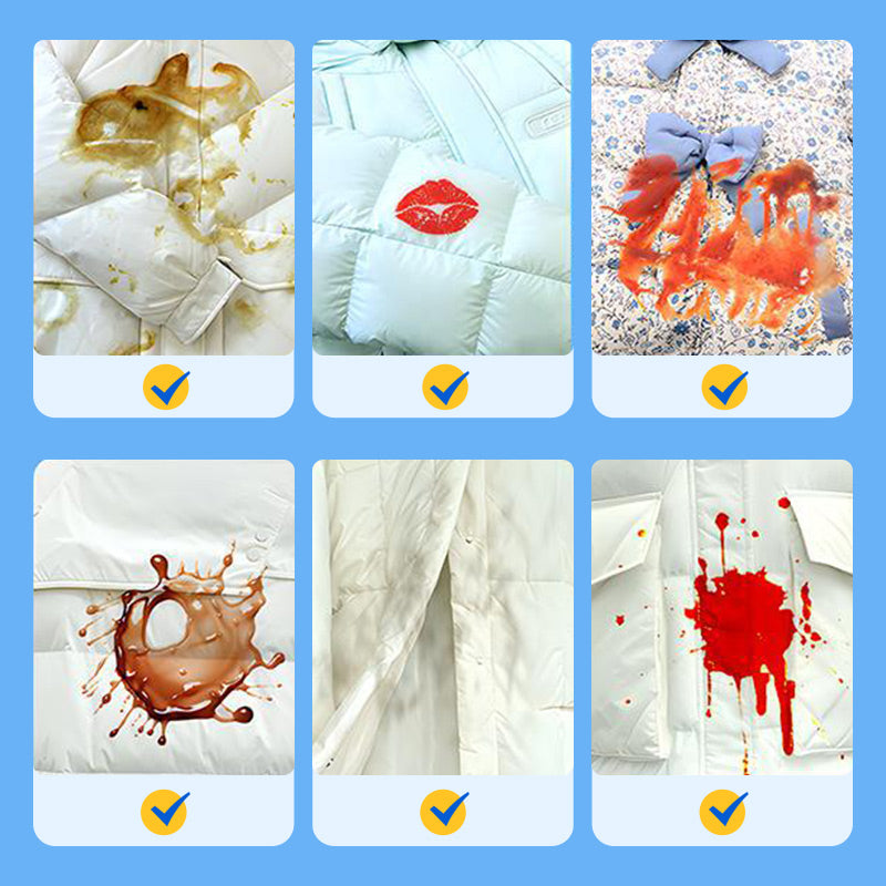 EFFECTIVE CLEANING: Restore your jacket's original shine with this powerful cleaner. Perfect for both white and colored jackets, it effectively removes stains like oil, lipstick, tomato, coffee, dust, and blood, bringing your jacket back to life.