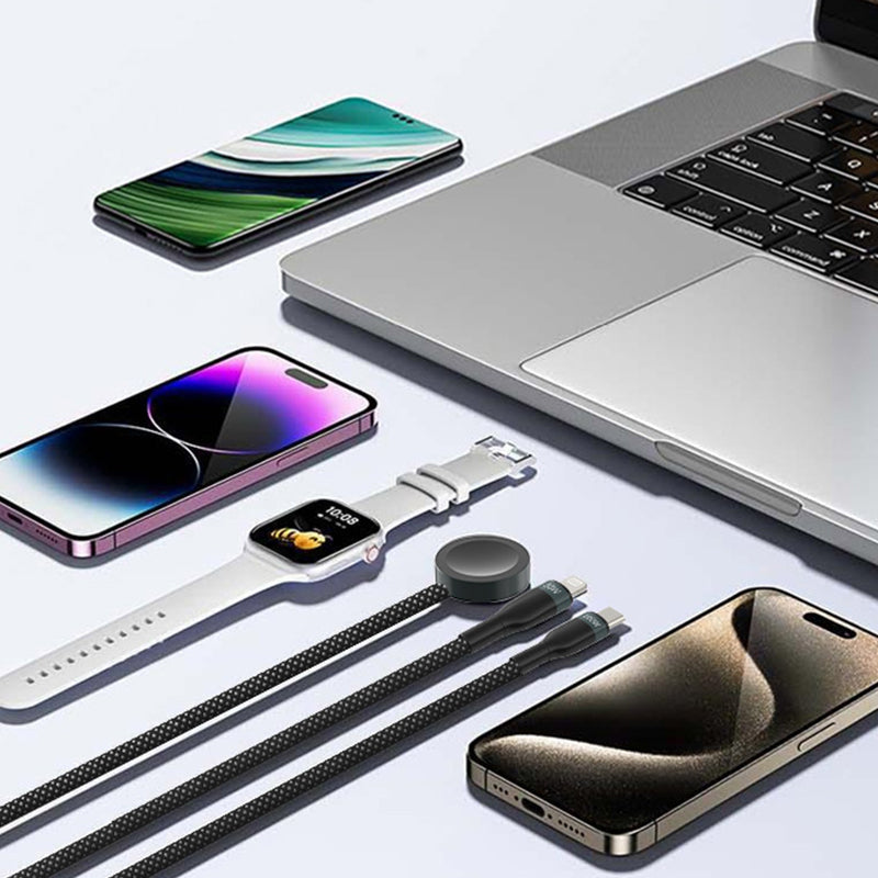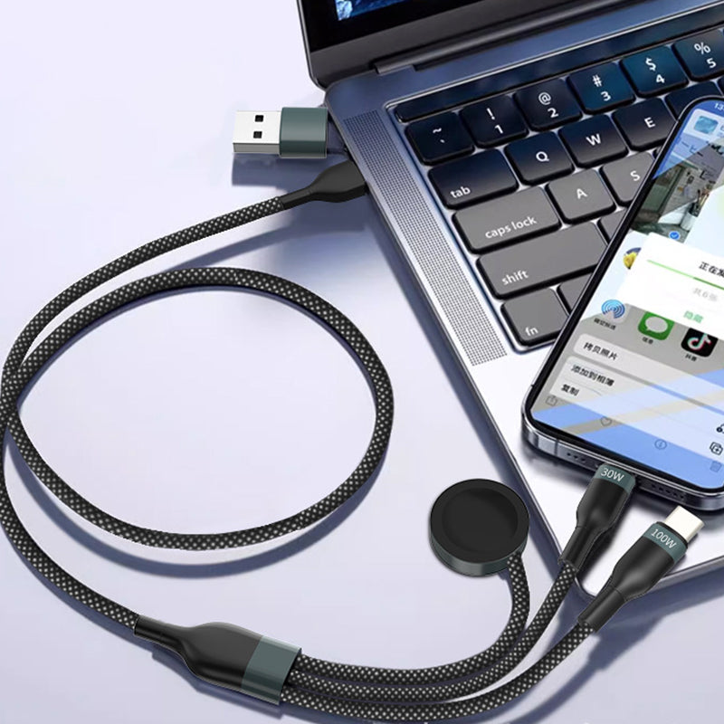 CHARGE MULTIPLE DEVICES – Power up in one go. Streamline your charging routine with this 3-in-2 multifunctional cable designed to support simultaneous charging of multiple devices. Whether you're managing smartphones, tablets, or portable accessories, this cable ensures stable output and efficient distribution without compromising speed or safety.