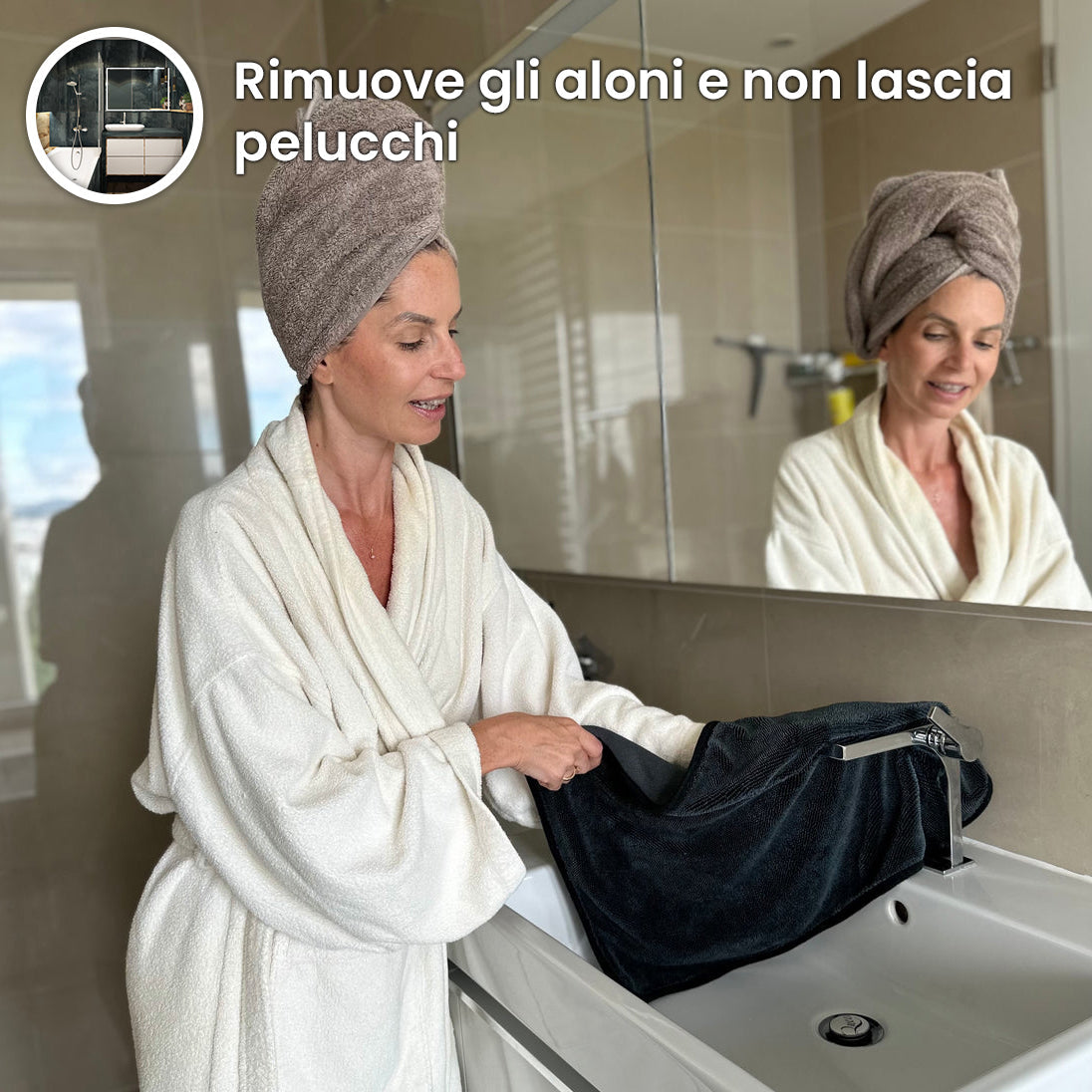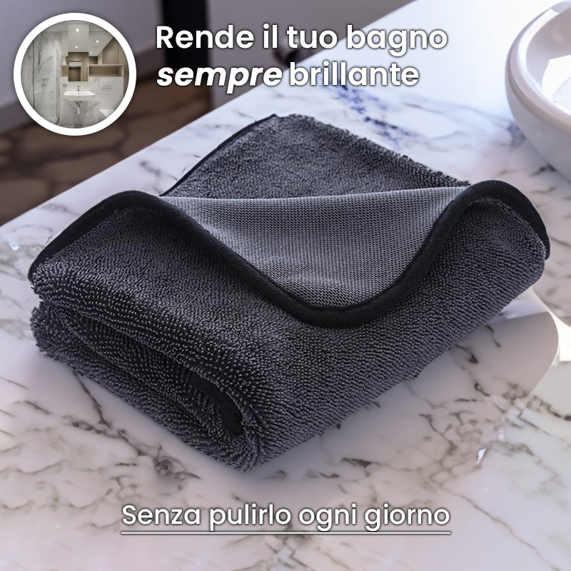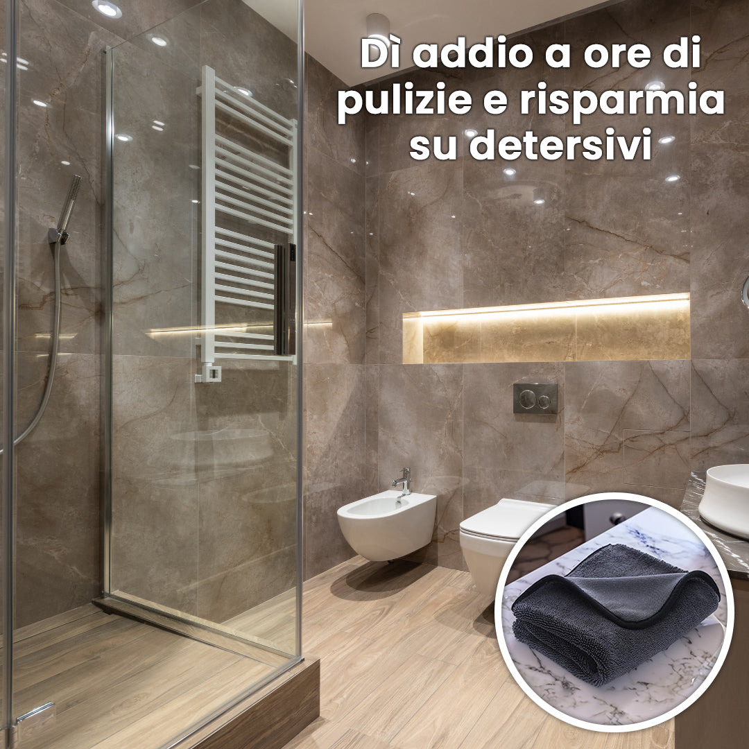 With the revolutionary ultra-absorbent glamorous cloth you can finally keep the bathroom always clean and in order without losing hours to rub and without sweating 7 shirts!