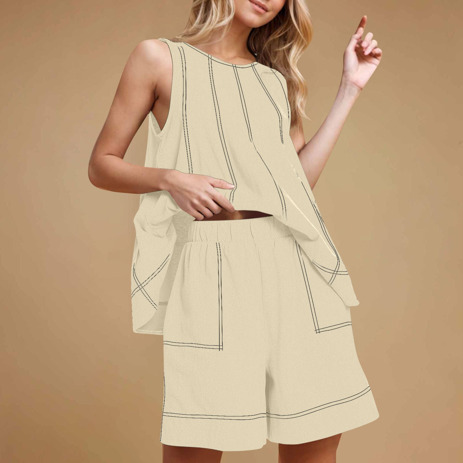 🏖️Summer Hot Sale 49% OFF🌼Women's Round-Neck Tank Top & High-Waisted Shorts Set