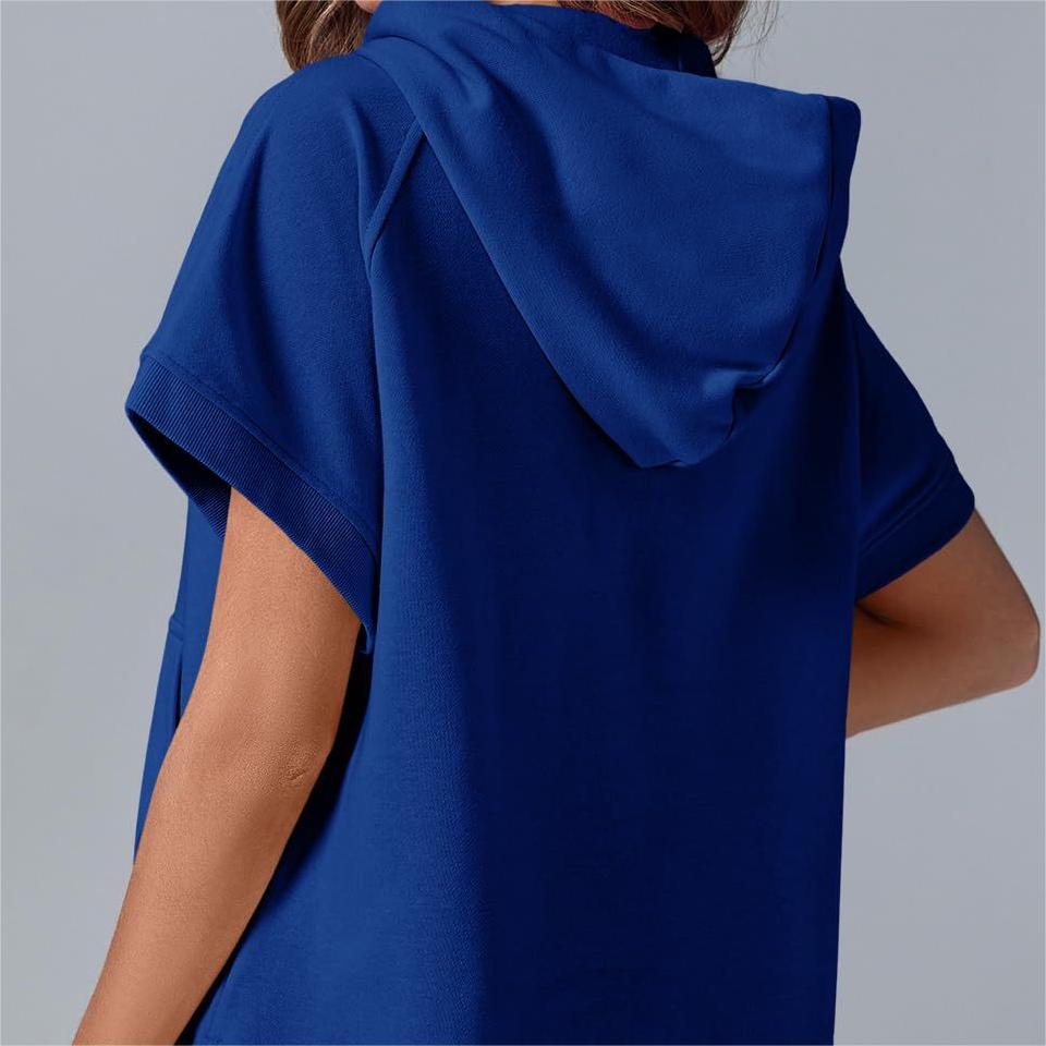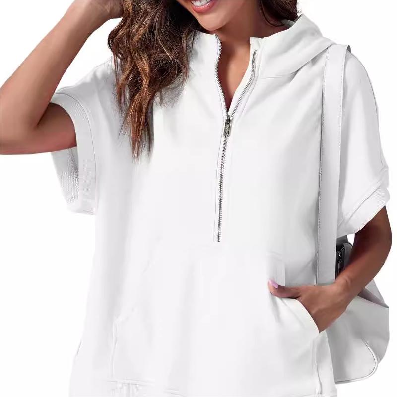 2024 Oversized Casual Half Zip Short Sleeve Pullover Tops with Pockets